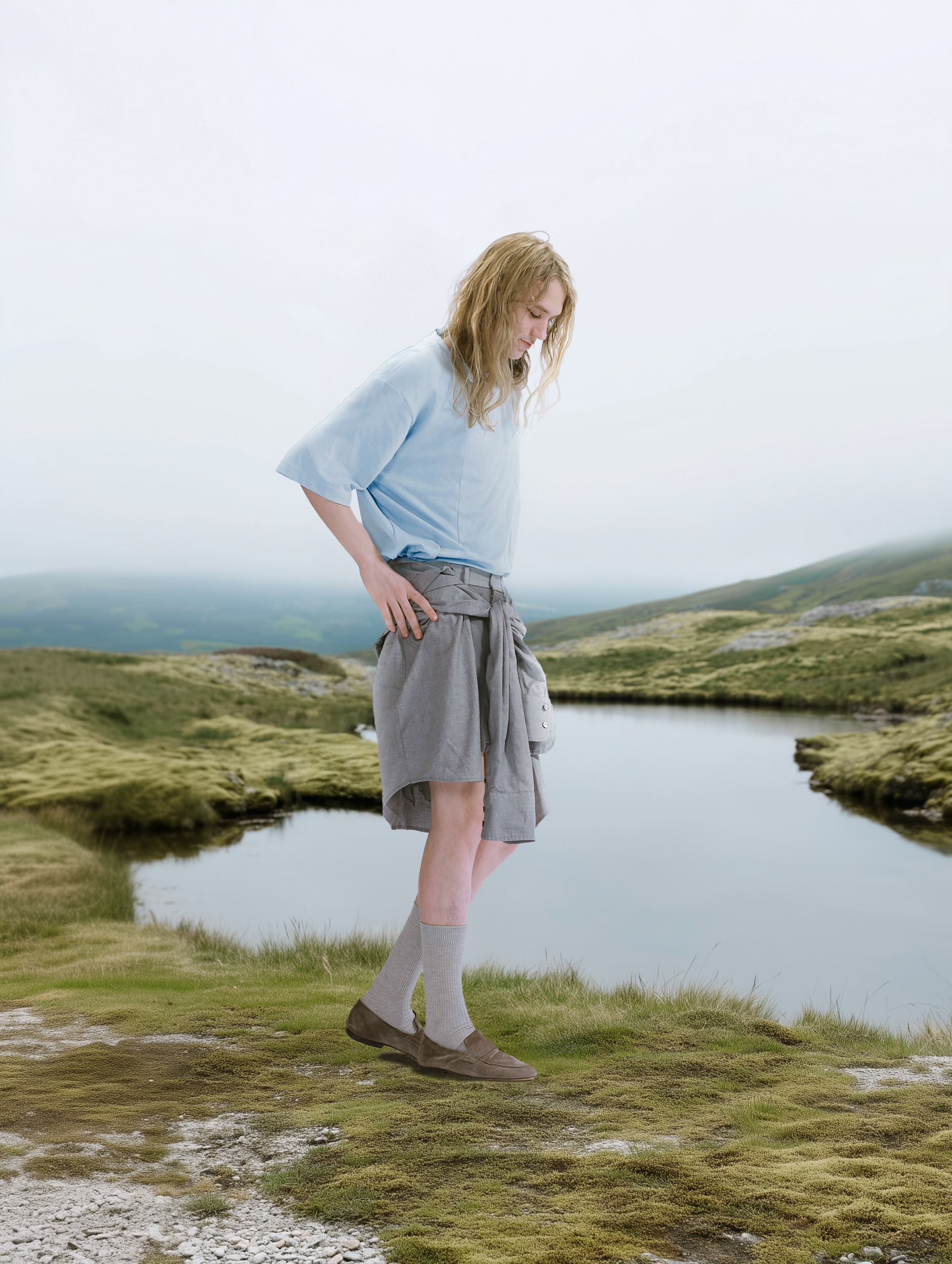 World Tour explores the dialogue between landscape and attire, translating the colors, forms, and atmospheres of diverse natural surroundings into contemporary design. Each garment embodies a fragment of the world’s terrains, reimagined through fabric and silhouette to evoke both movement and destination.